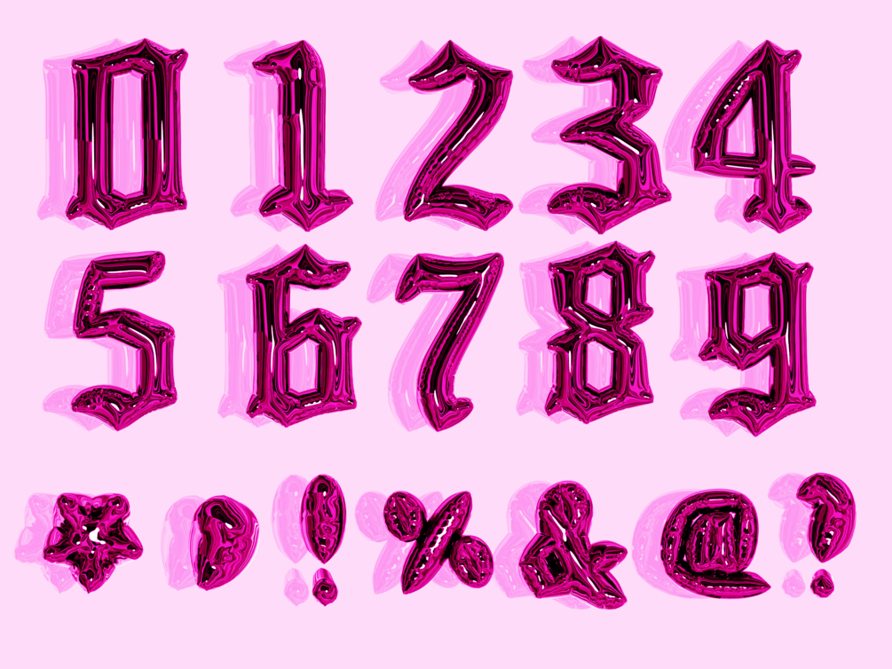 PNG PINK Realistic old English Chrome balloon letters, numbers, symbols | png letters | png clipart | png balloon letters | digital download